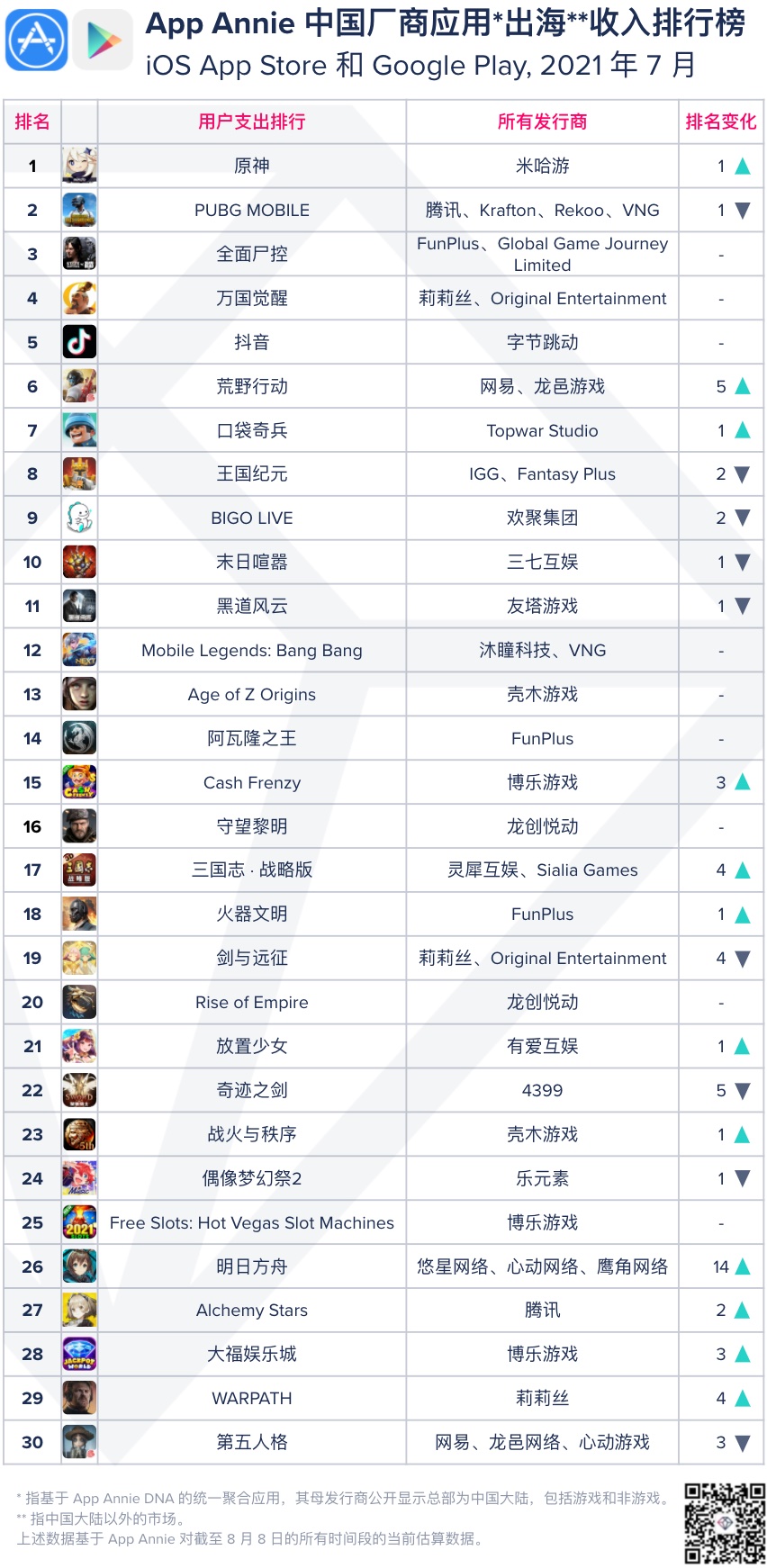 注:上述数据根据 App Annie 对到 2021 年 8 月 8 日的一切时间段的当时预算数据。
