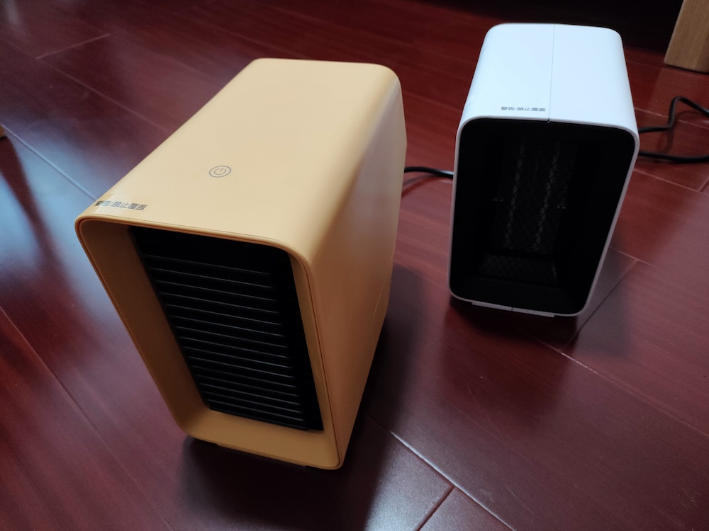 先来看暖风机。第一款产品是“煦”,功率能够挑选。这款产品选用50°视点的斜角规划,能够让你立卧两用。具有两个档位的开关,能够根据需求来进行调理。其选用了共同的栅门规划,是的散热片之间构成半关闭的空间,能够添加空气对流,然后扩展制热作用。