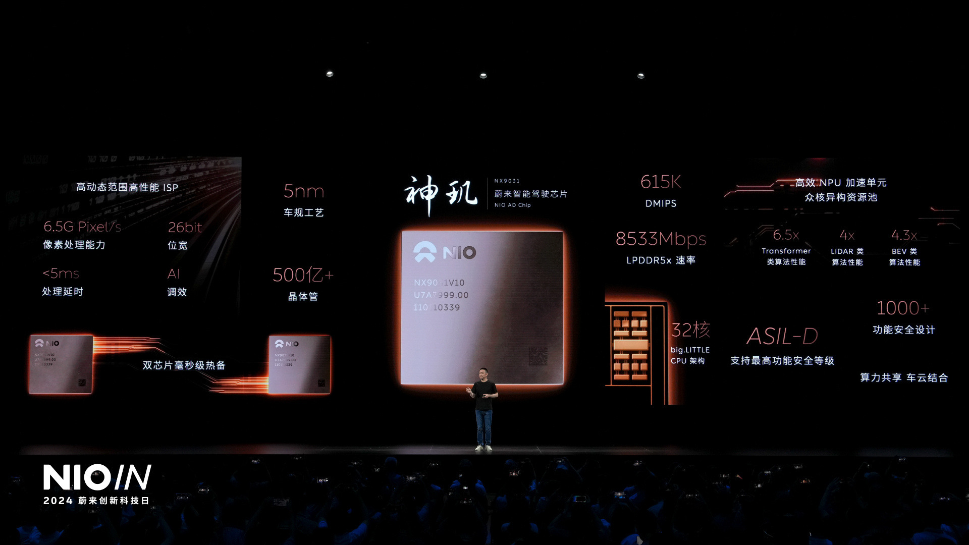 蔚来在芯片范畴取得了打破,旗下全球首颗车规5nm高功用智驾芯片”蔚来神玑NX9031″已成功流片。这一打破标志着蔚来现已完成了硬件芯片和底层软件的自主规划,进一步强化了公司在智能驾驭范畴的技能实力。神玑NX9031是业界首款选用5nm车规工艺制作的高阶智能驾驭芯片,其功用指标令人形象深化。这款芯片具有超越500亿颗晶体管,选用32中心CPU架构,内置LPDDR5x 8533Mbps速率RAM。在图画处理方面,它可完成”高动态规模高功用ISP”,具有6.5 G Pixel/s的像素处理才干,处理延时更是小于5ms。